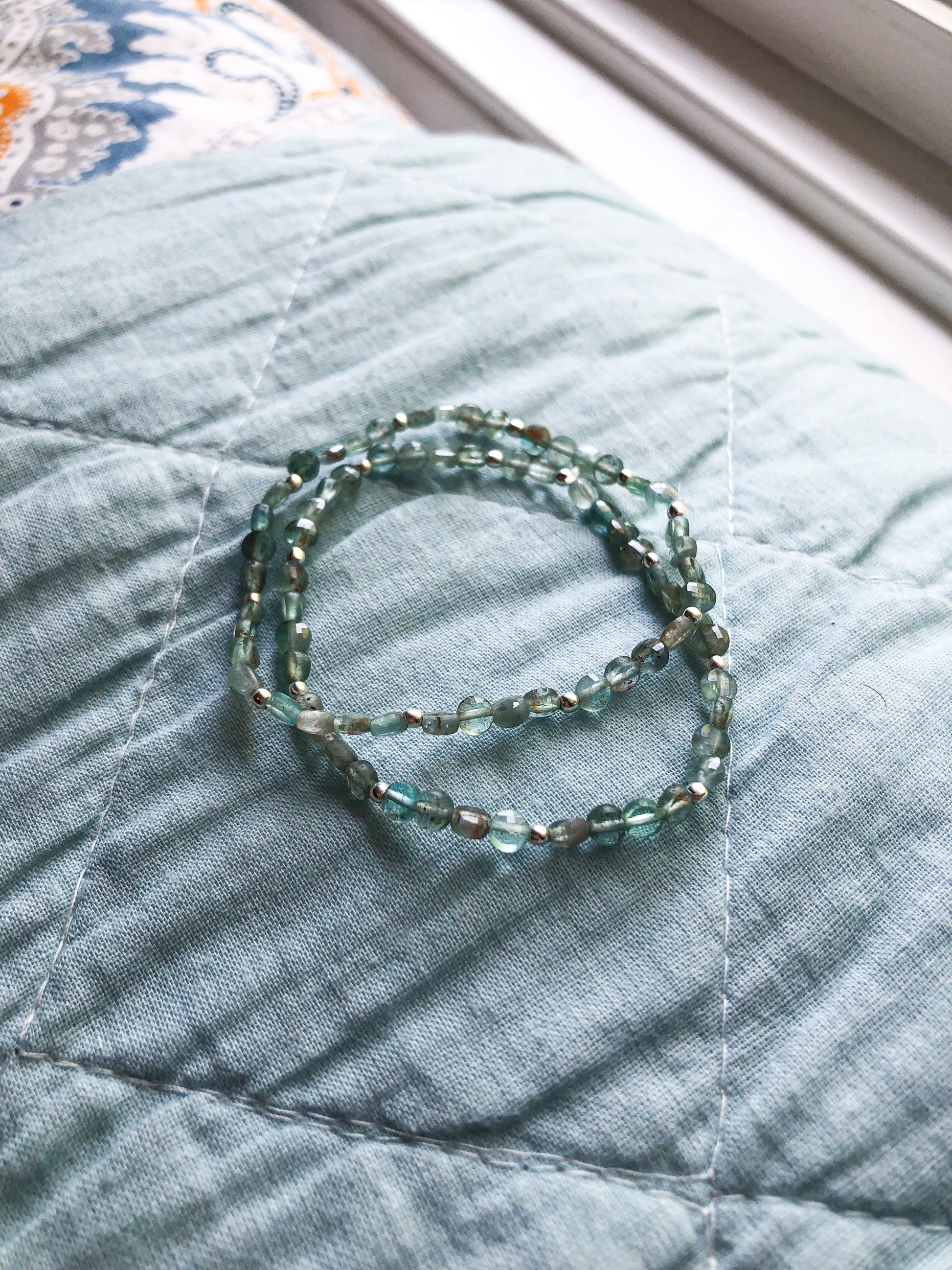 - Pretty blue Apatite gemstones with silver fill accent beads