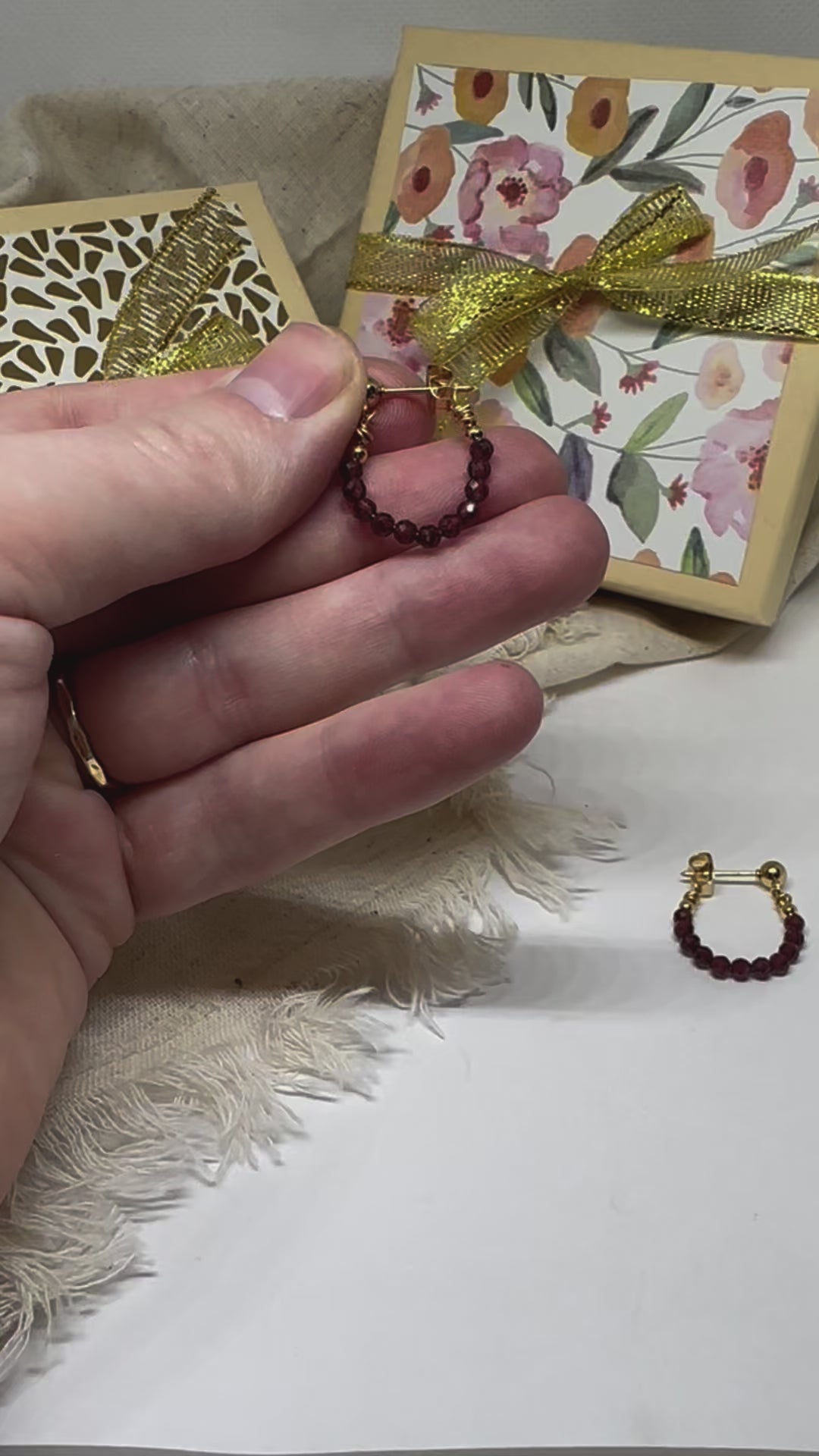 Birthstone hoop earrings January - garnet