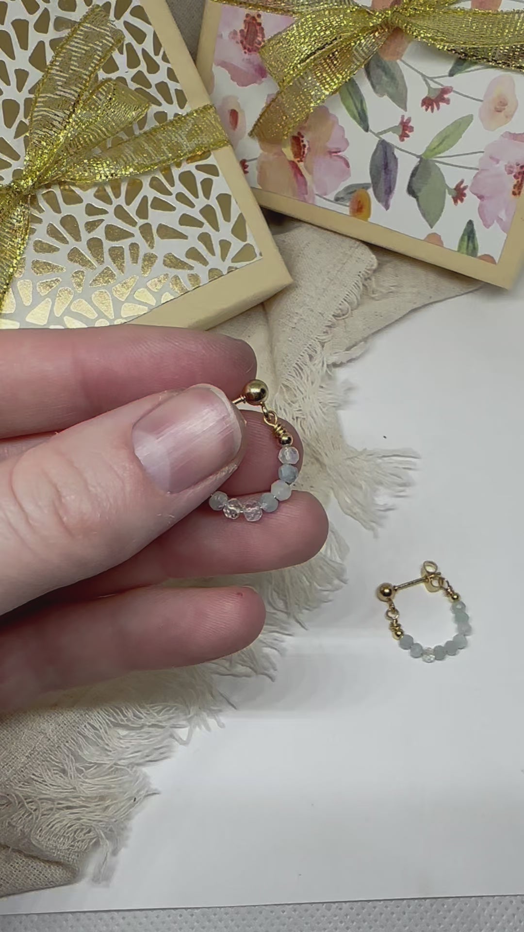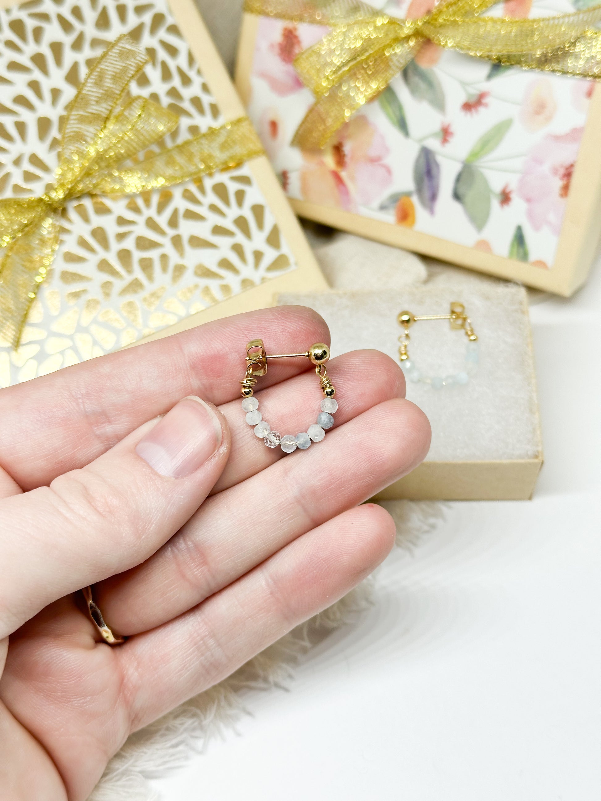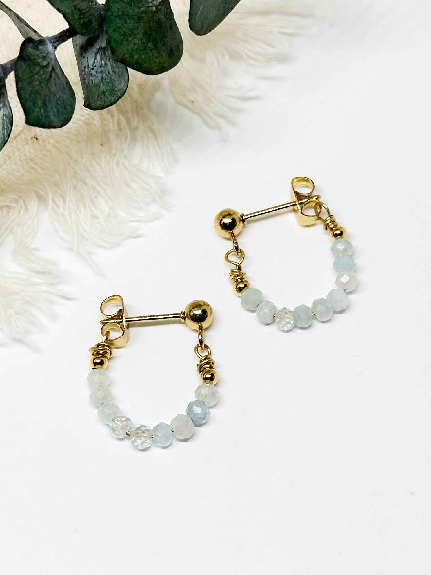 Birthstone hoop earrings March - aquamarine