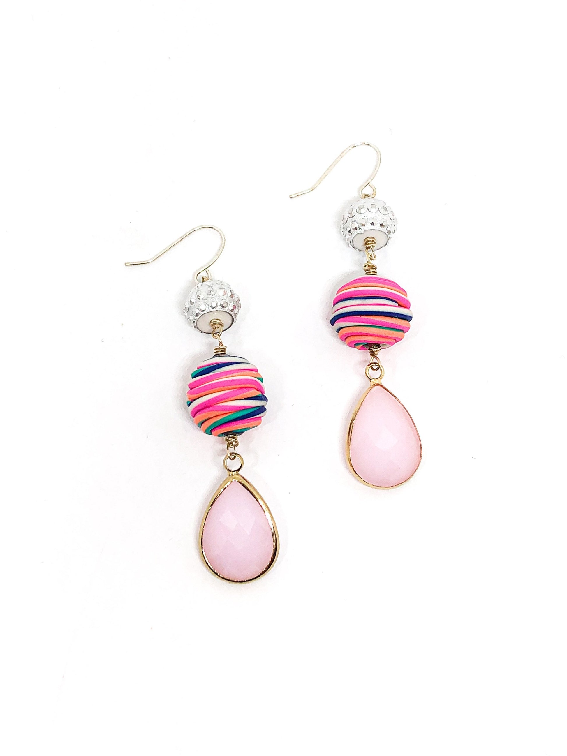 - These awesome earrings are made with fimo clay beads, rhinestones and glass teardrop gemstones