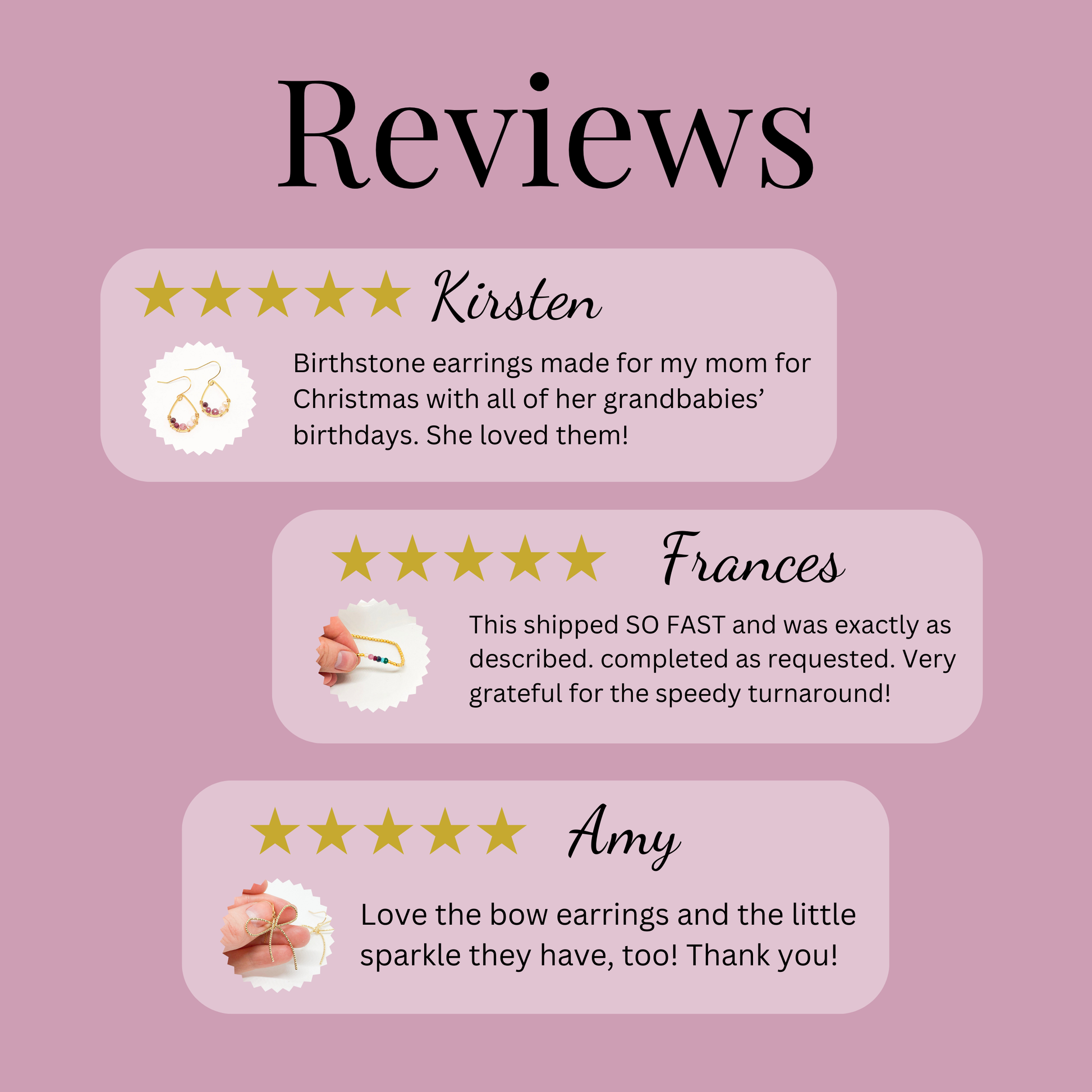 “Beautiful craftsmanship, these were for my mother in law, she loves them. I love supporting small businesses.” - Josh
