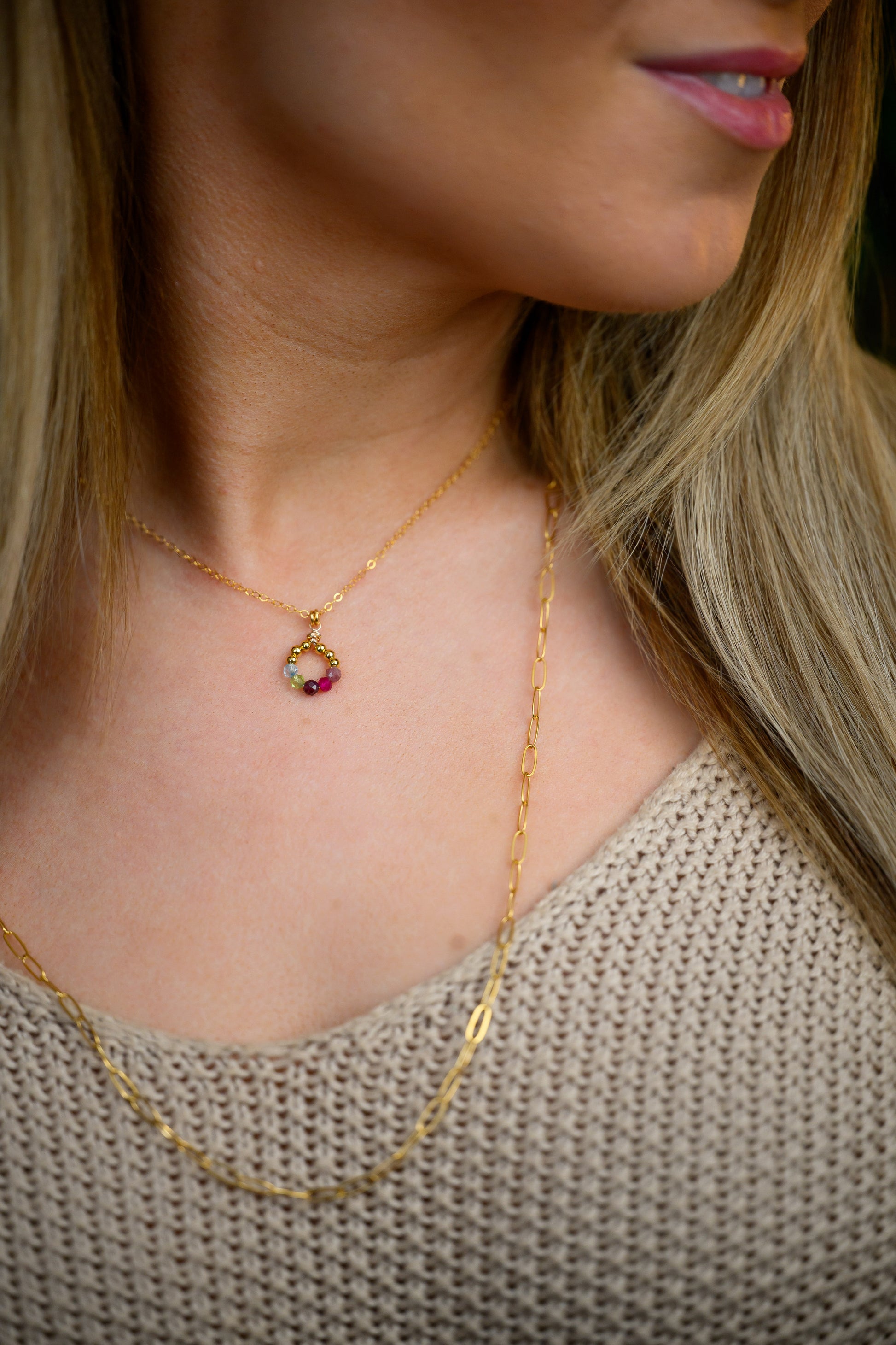 Custom birthstone necklace - circle