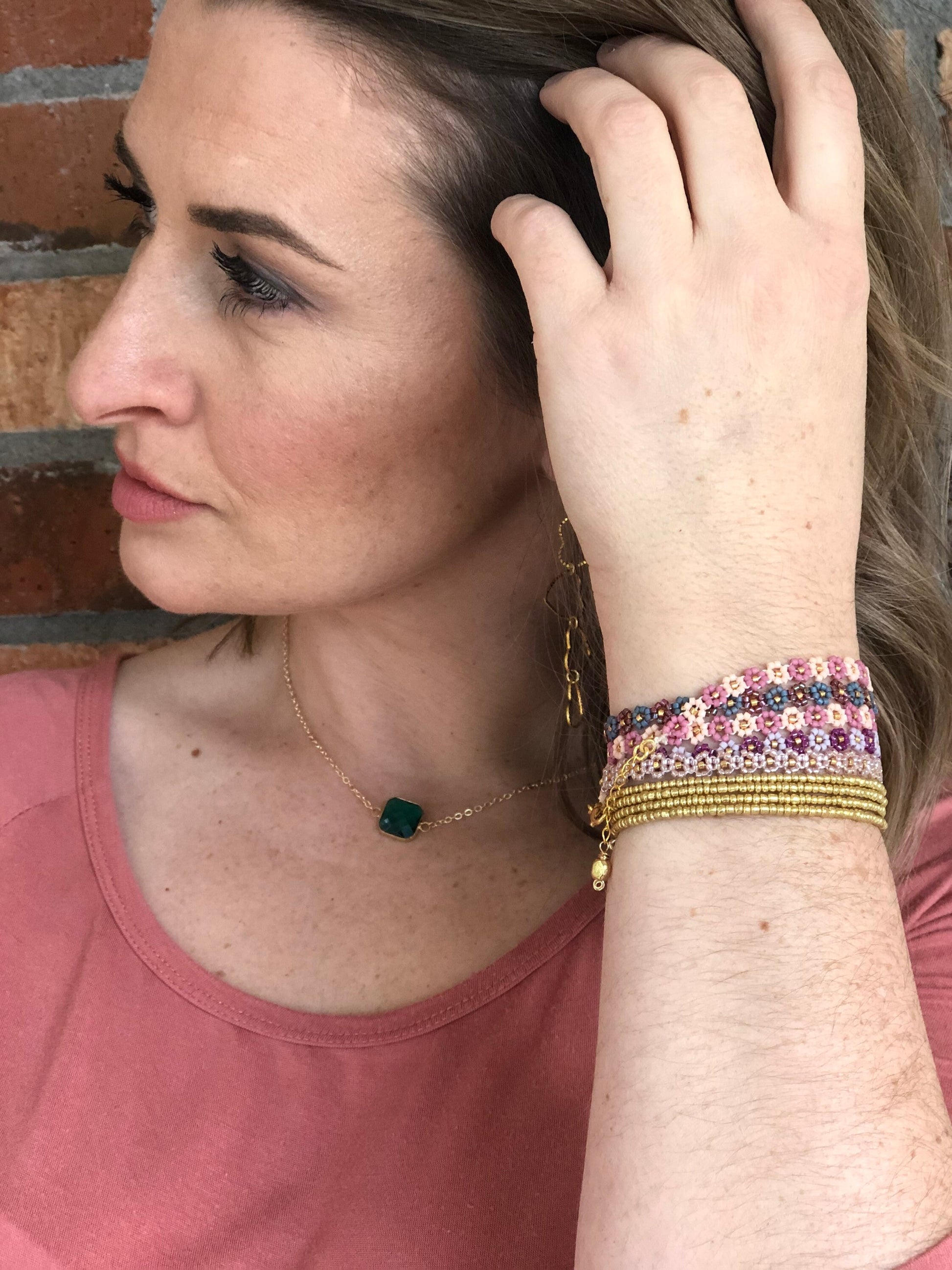 Dark pink daisy chain bracelet