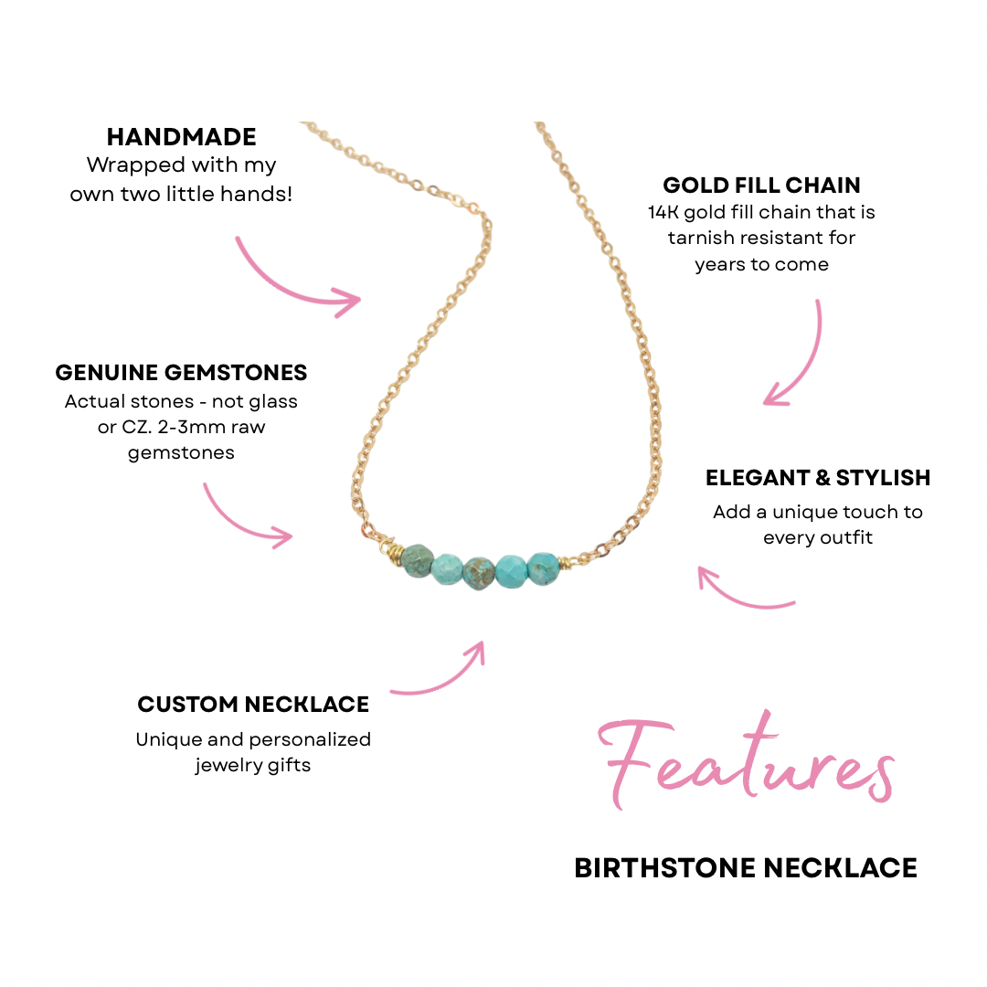 December birthstone necklace in gold or silver - Turquoise, Tanzanite