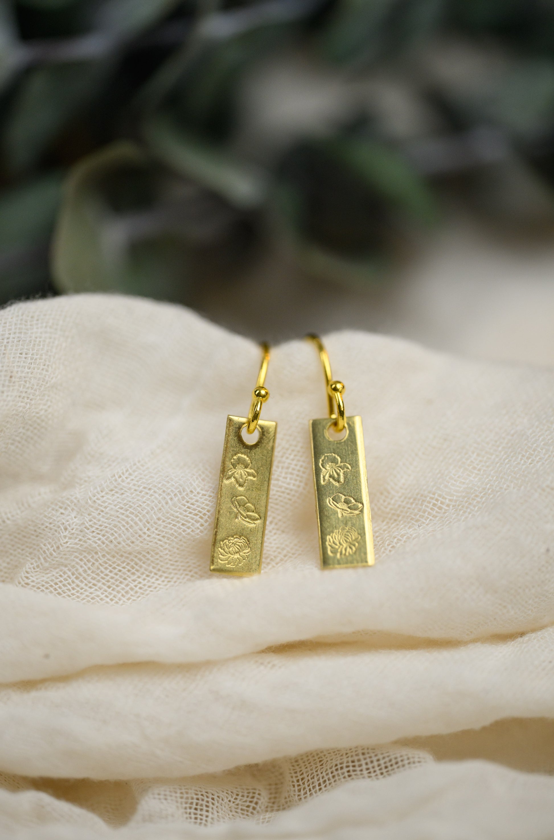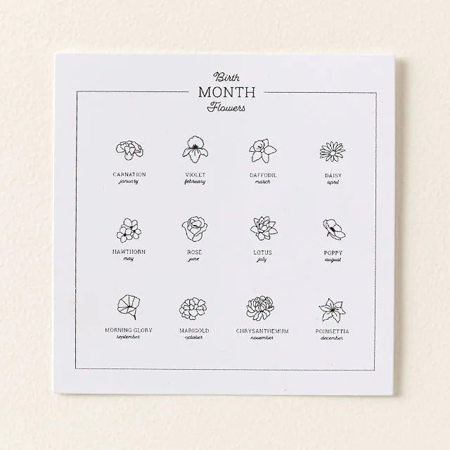 - Each earring is hand stamped with the birth flowers of your choice. Let me know the months you need in the box at checkout!