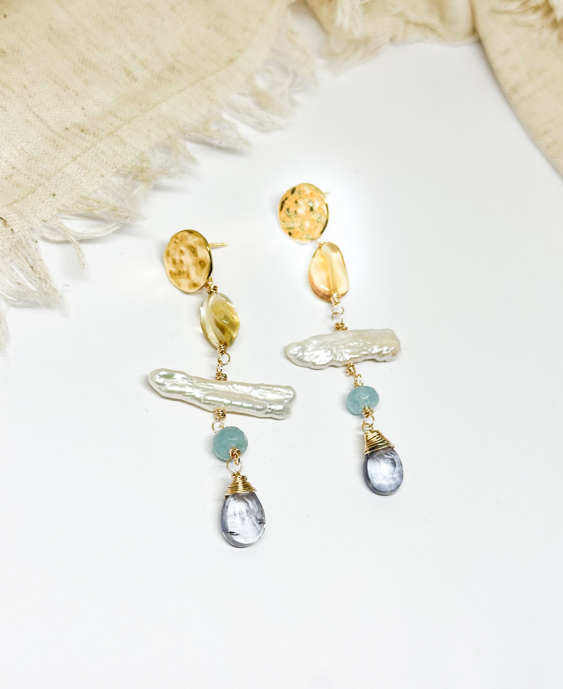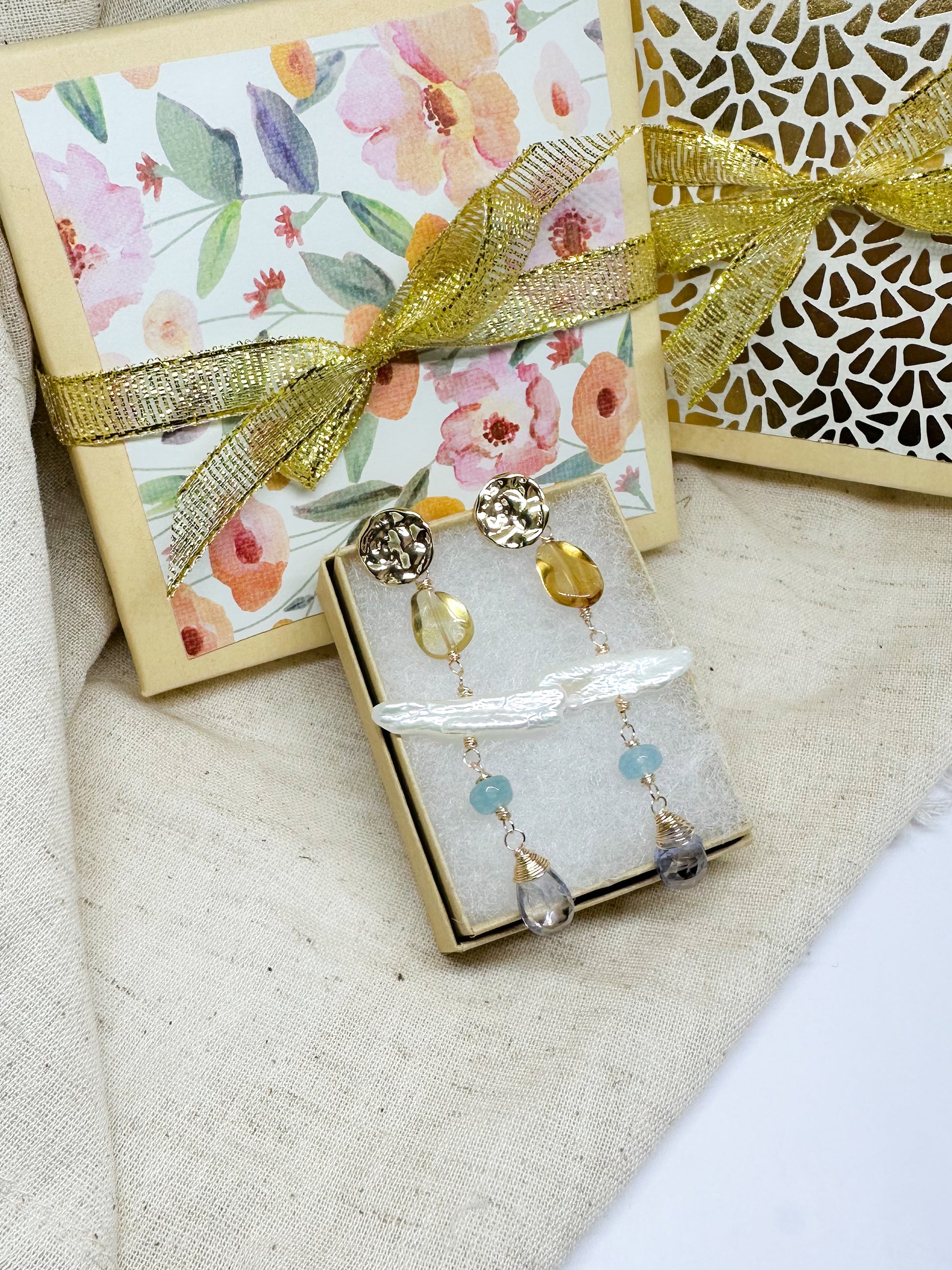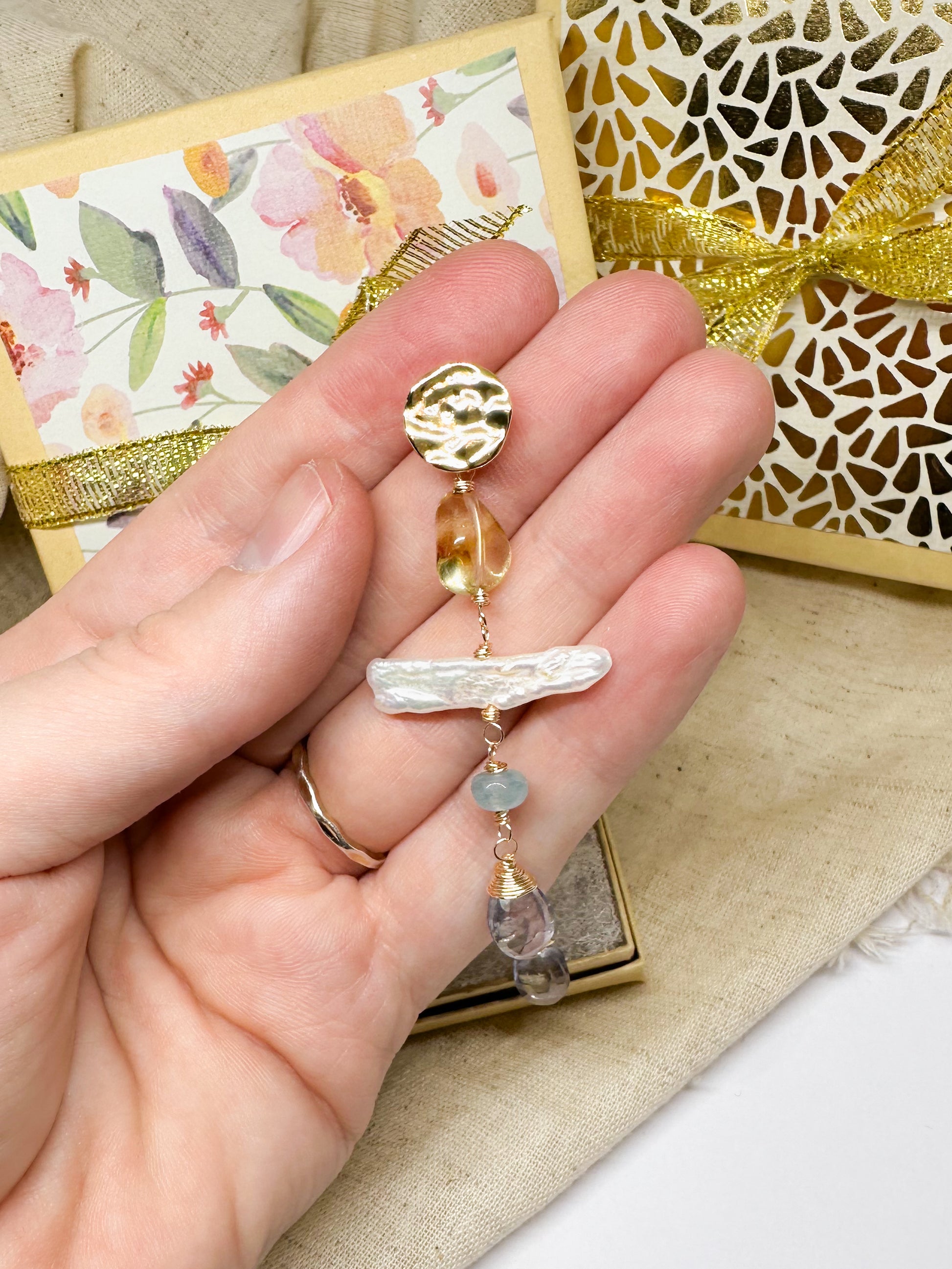 “ Love these earrings!! I get so many compliments about them when I wear them, and even though they are longer, they are very lightweight and don’t tire my ears out or make them feel sore at the end of the day. The metal is very high quality, which is important as I have sensitive ears. I loved the experience in working with Elyse, she’s so sweet and her jewelry is top notch!” - Kate