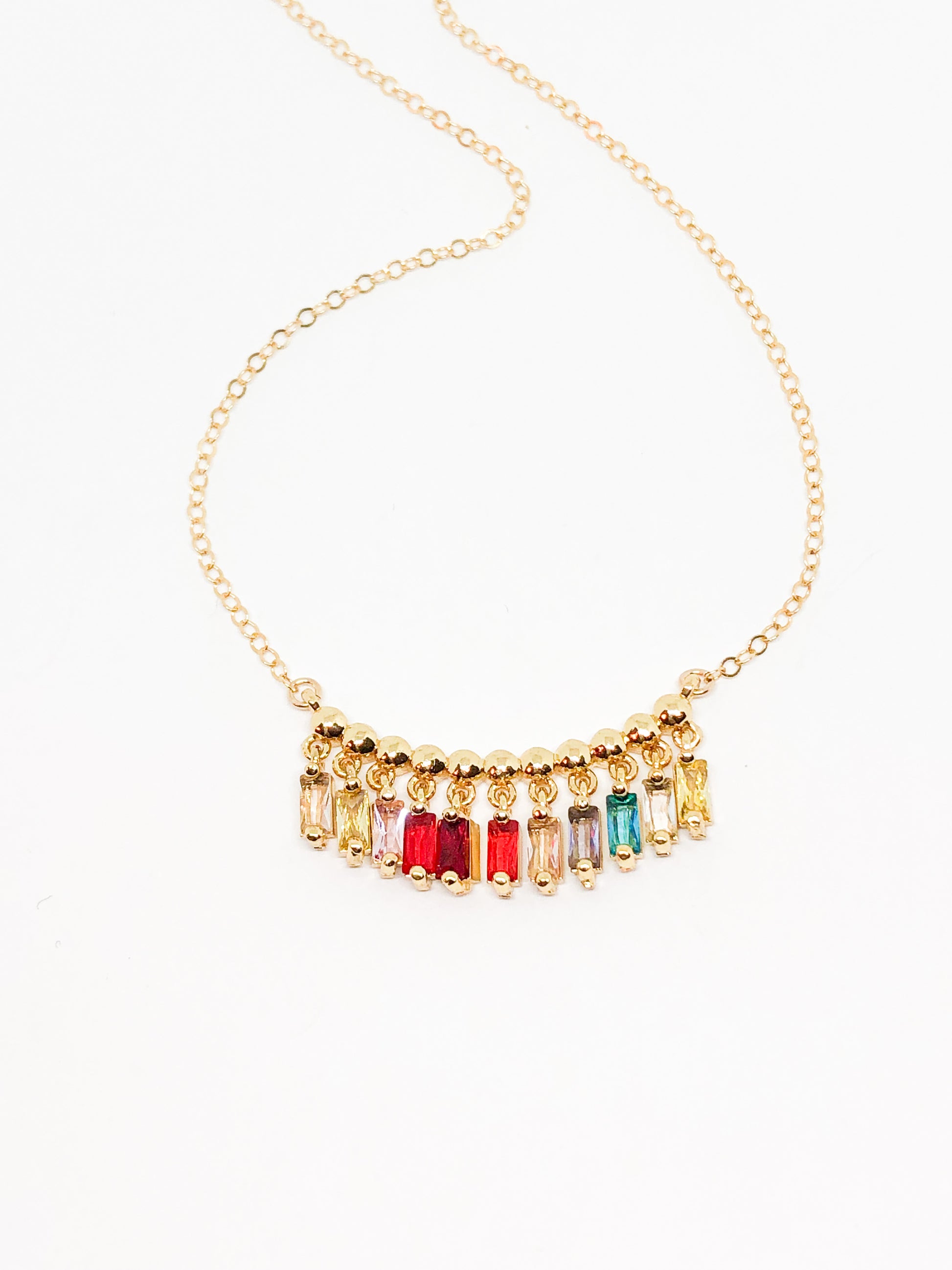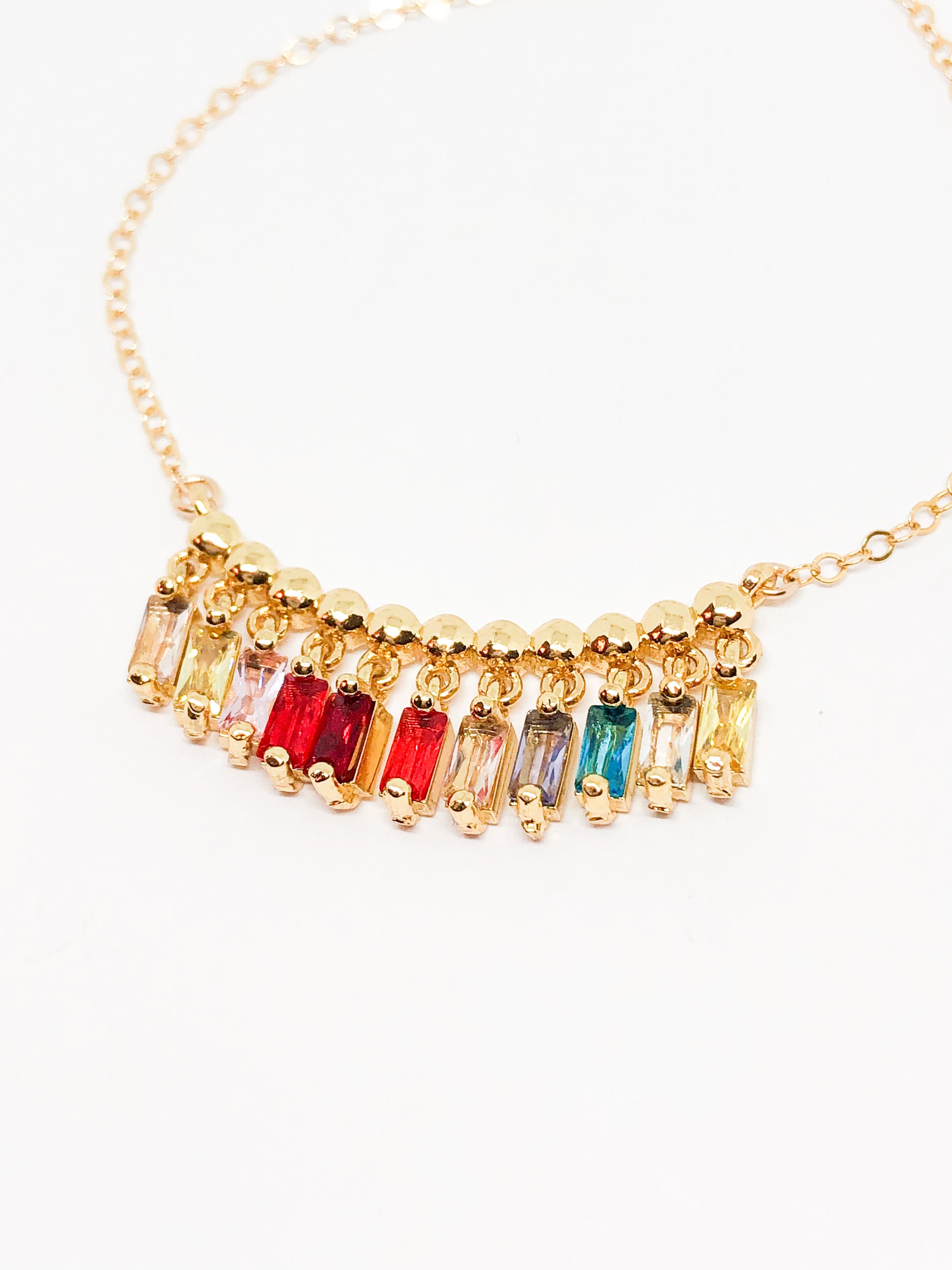 - Gold charm with rainbow rhinestones is about 1.2 inches wide