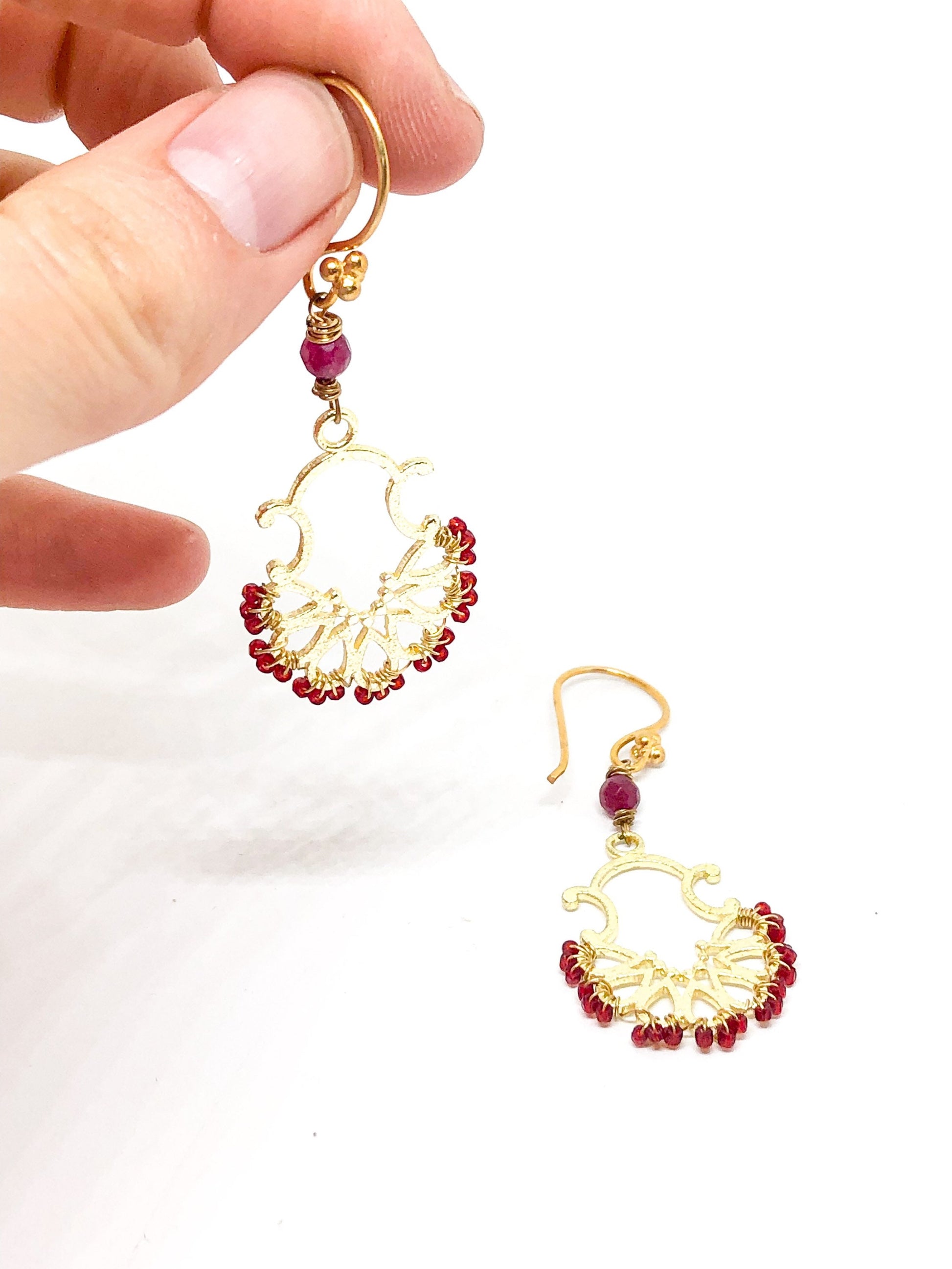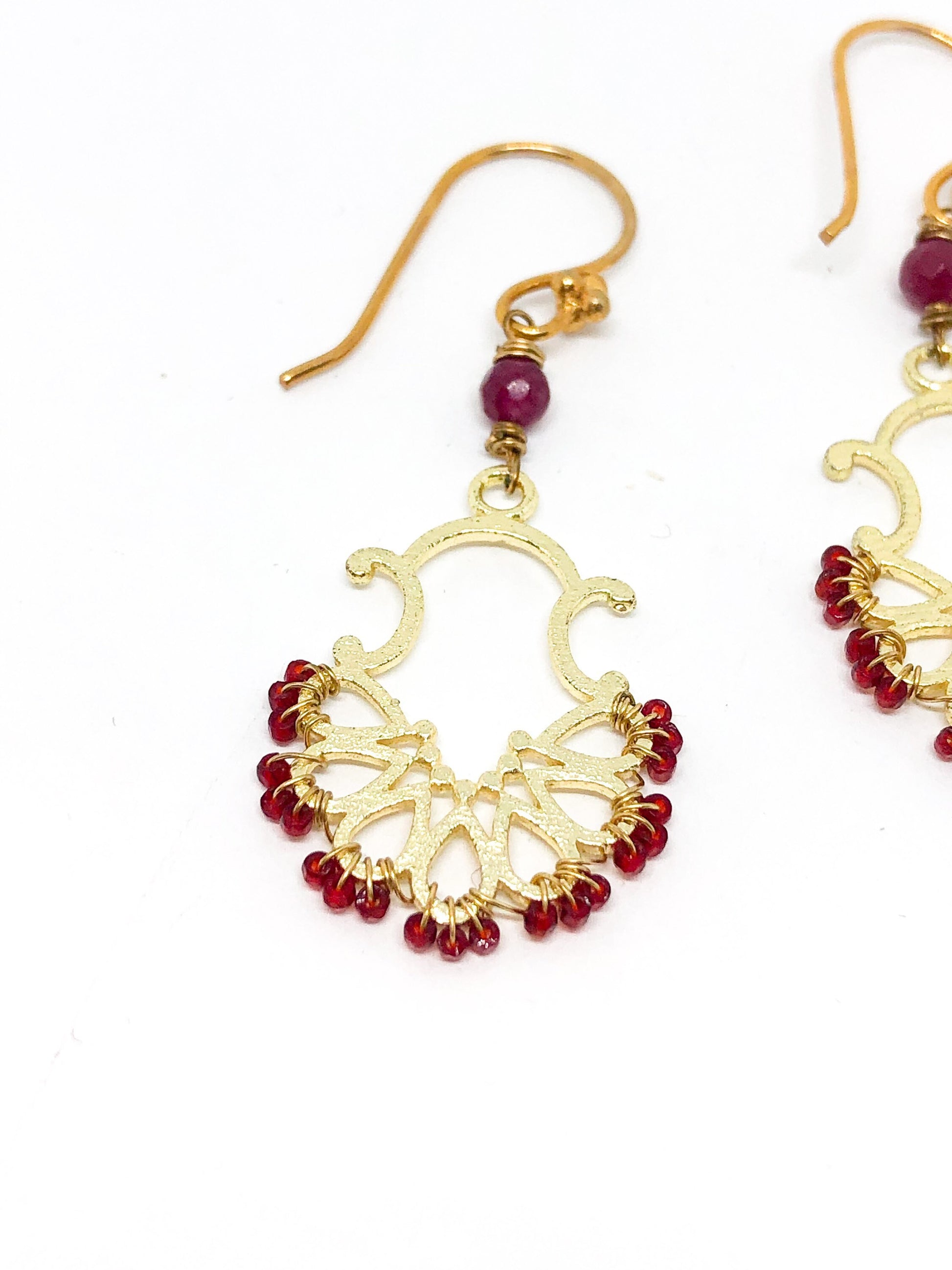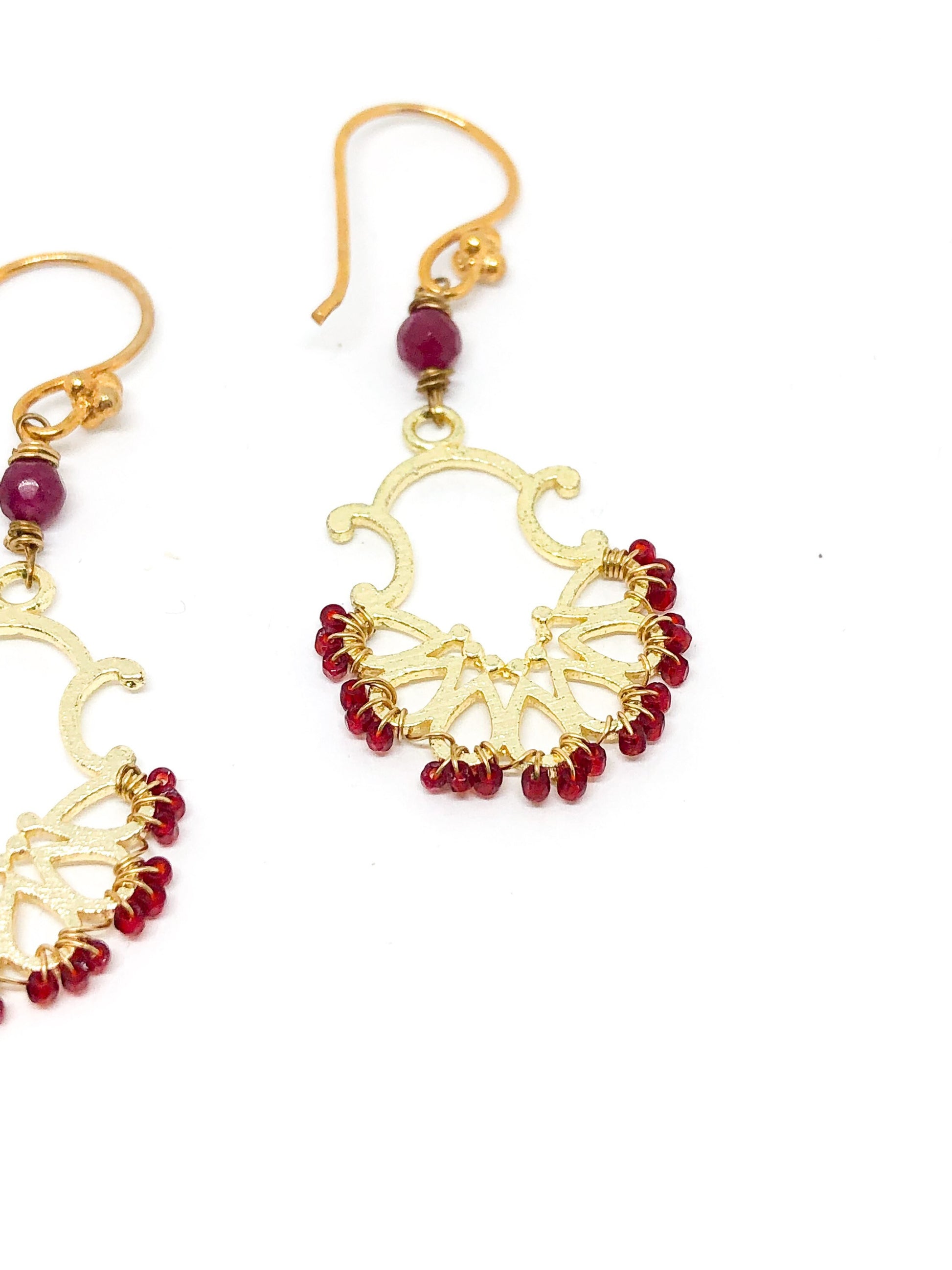 Red and gold statement earrings