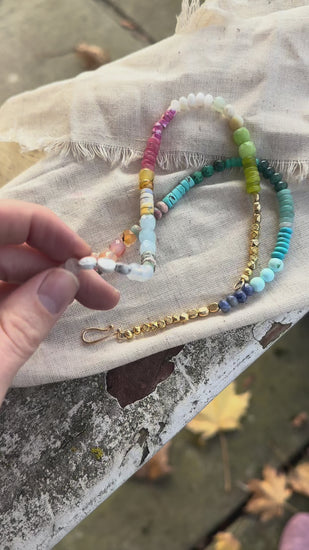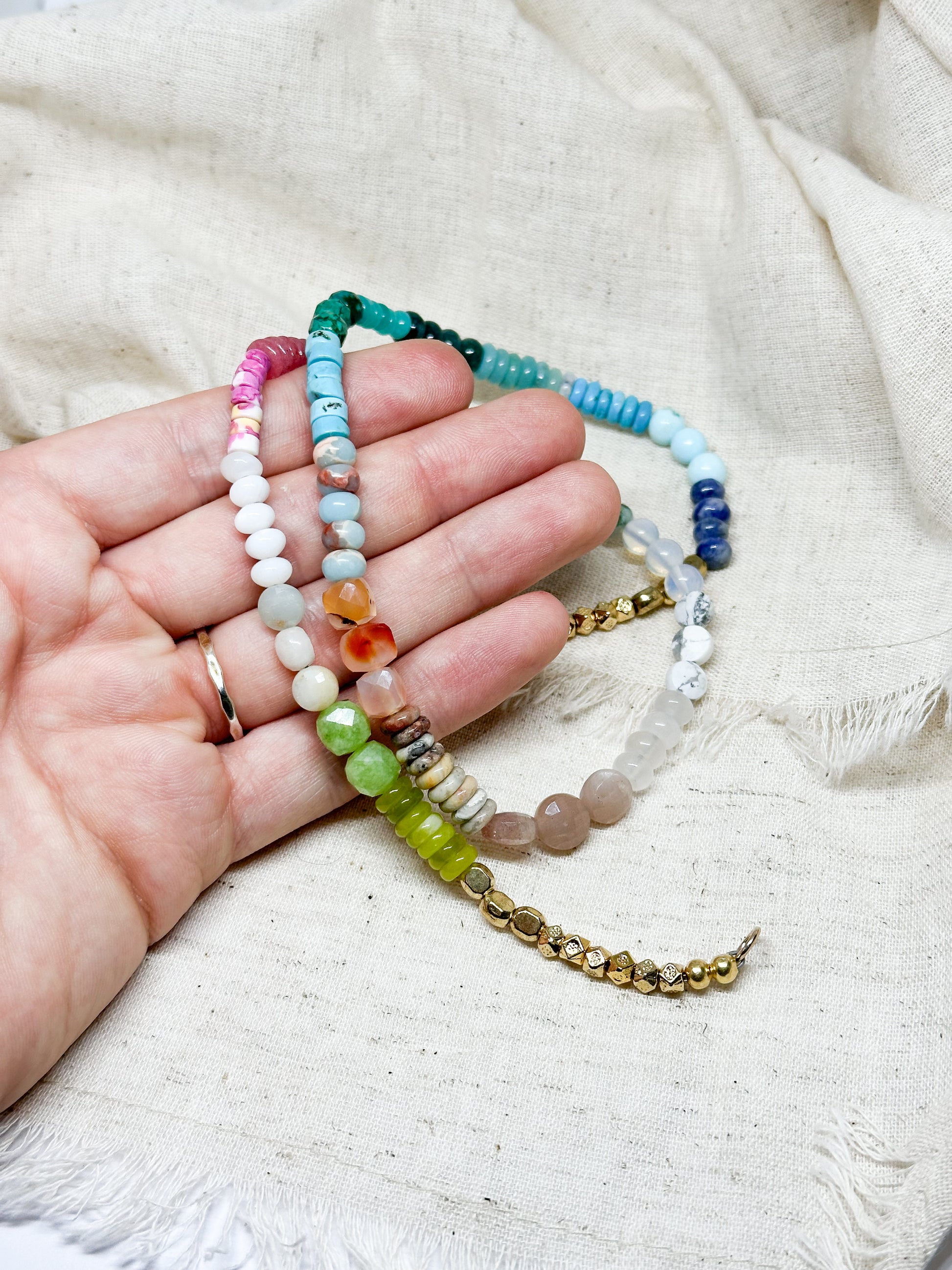 - Beautiful mix of REAL stones including: turquoise, quartz, jasper, yellow jade, zirconia, howlite, blue jade and more!